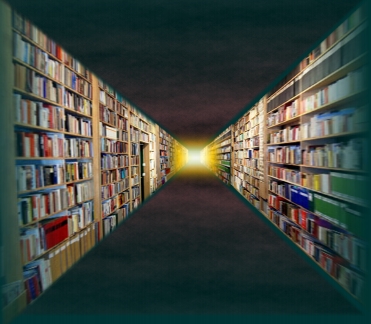 Gänge einer Art Bibliothek. Das weiß-goldene Licht am Ende hatte ich aber