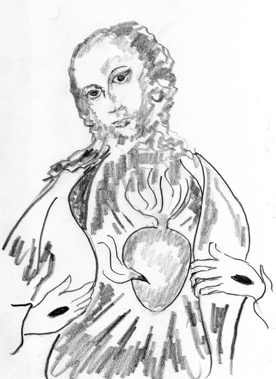 Sehr ansprechend in Bezug auf die Übung fand ich die Herz-Jesu Darstellungen. Jesus zeigt uns sozusagen vor wie es sein sollte. In Indien wird Hanuman mit geöffnetem Liebesherz dargestellt.